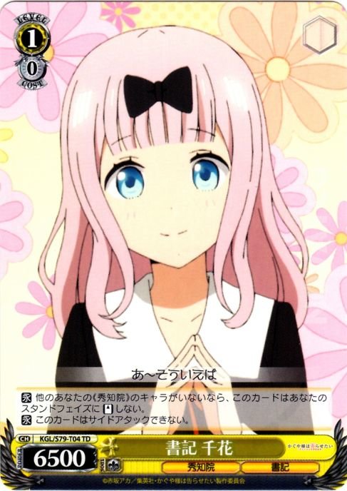 【永】 他のあなたの《秀知院》のキャラがいないなら、このカードはあなたのスタンドフェイズに【スタンド】しない。