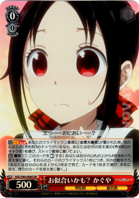 【自】【CXコンボ】 あなたのクライマックス置場に「妄想大爆発」が置かれた時、他のあなたの《秀知院》のキャラがいるなら、あなたは自分の控え室の《秀知院》のキャラを1枚選び、ストック置場に置いてよい。
