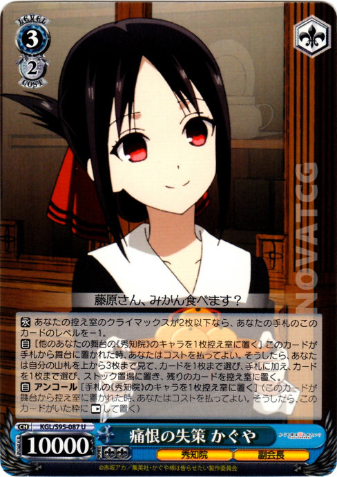 【自】 アンコール [手札の《秀知院》のキャラを1枚控え室に置く] (このカードが舞台から控え室に置かれた時、あなたはコストを払ってよい。そうしたら、このカードがいた枠に【レスト】して置く)