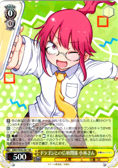 [S] – [REST this card] If you have four or more other《Human》or《Dragon》Characters, draw one card, choose one card in your Hand, send it to Waiting Room.