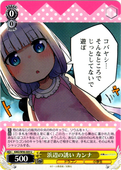 [A] – [(1) Send one card from Hand to Waiting Room] When this card is placed on Stage from Hand, you may pay the cost. If you did, search your Deck for up to one《Human》or《Dragon》Character, reveal it to your opponent, add it to Hand, shuffle your Deck afterwards.