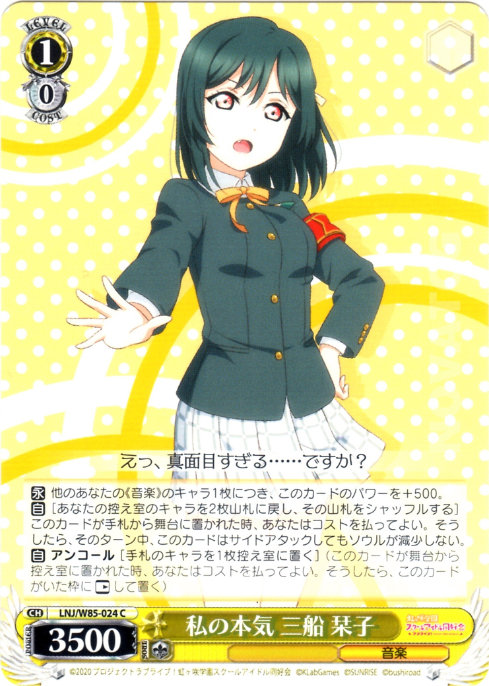 【永】 他のあなたの《音楽》のキャラ1枚につき、このカードのパワーを+500。