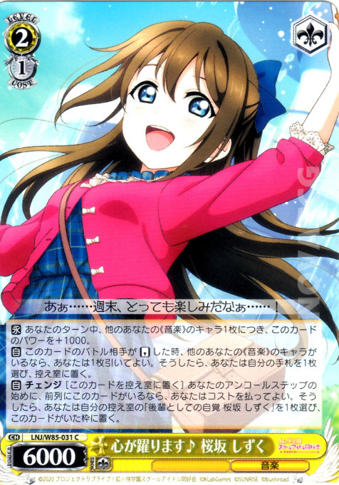 【永】 あなたのターン中、他のあなたの《音楽》のキャラ1枚につき、このカードのパワーを+1000。