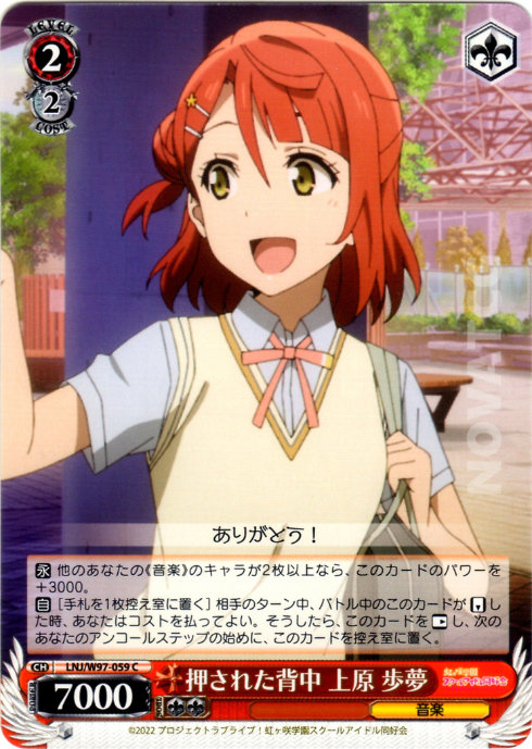 【永】 他のあなたの《音楽》のキャラが2枚以上なら、このカードのパワーを+3000。