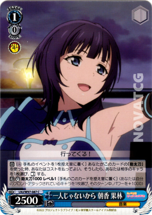 【起】【カウンター】 助太刀1000 レベル1 [手札のこのカードを控え室に置く] (あなたは自分のフロントアタックされているキャラを1枚選び、そのターン中、パワーを+1000)