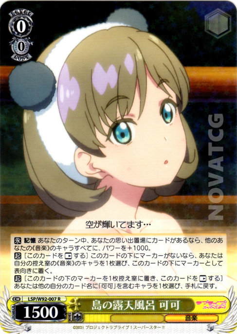 【起】[このカードの下のマーカーを1枚控え室に置き、このカードを【レスト】する] あなたは他の自分のカード名に「可可」を含むキャラを1枚選び、手札に戻す。