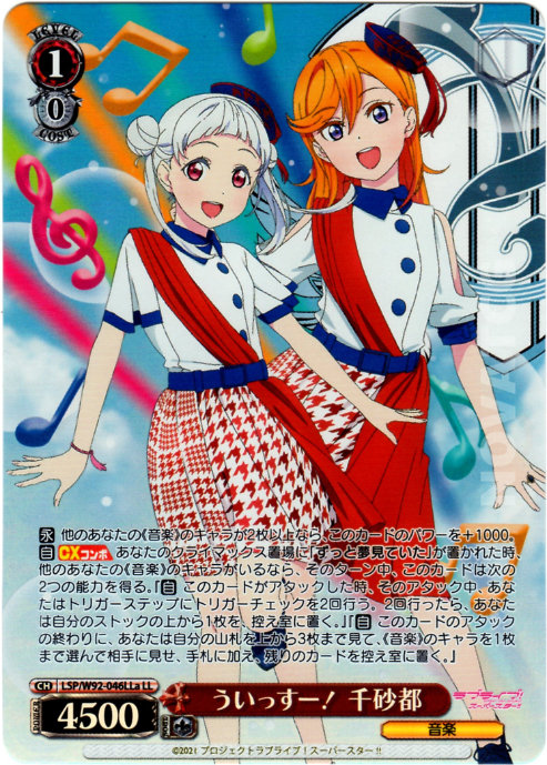 【永】 他のあなたの《音楽》のキャラが2枚以上なら、このカードのパワーを+1000。