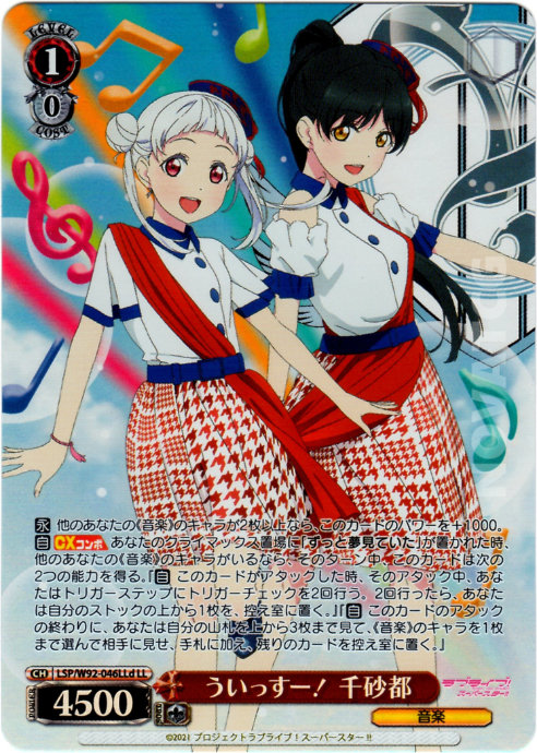 【永】 他のあなたの《音楽》のキャラが2枚以上なら、このカードのパワーを+1000。