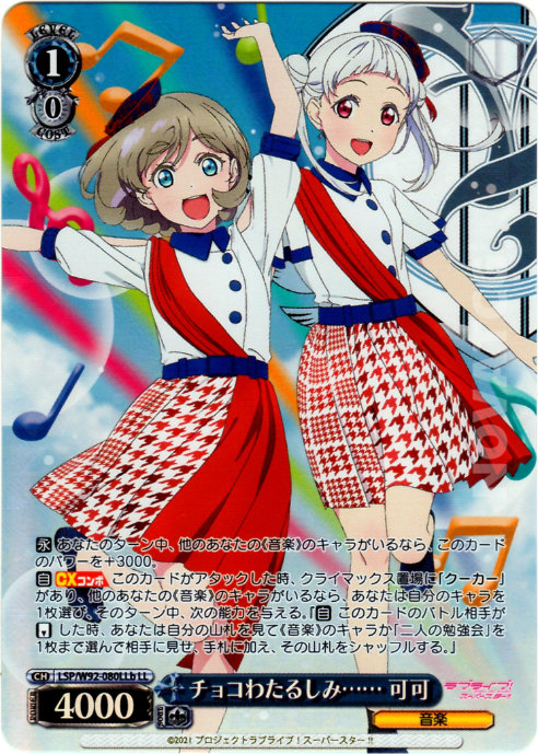 【永】 あなたのターン中、他のあなたの《音楽》のキャラがいるなら、このカードのパワーを+3000。