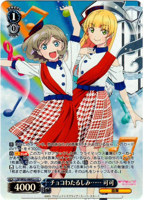 【永】 あなたのターン中、他のあなたの《音楽》のキャラがいるなら、このカードのパワーを+3000。