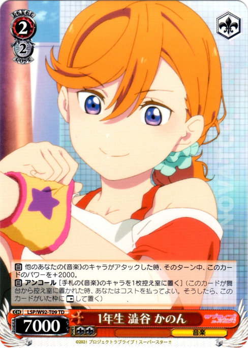 【自】 他のあなたの《音楽》のキャラがアタックした時、そのターン中、このカードのパワーを+2000。