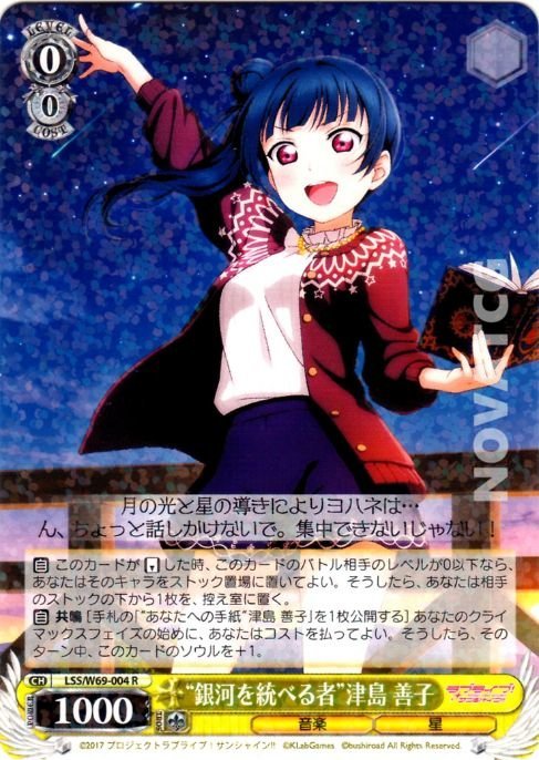 【自】 共鳴 [手札の「“あなたへの手紙”津島 善子」を1枚公開する] あなたのクライマックスフェイズの始めに、あなたはコストを払ってよい。そうしたら、そのターン中、このカードのソウルを+1。