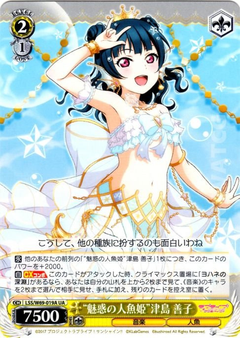 【永】 他のあなたの前列の「“魅惑の人魚姫”津島 善子」1枚につき、このカードのパワーを+2000。
