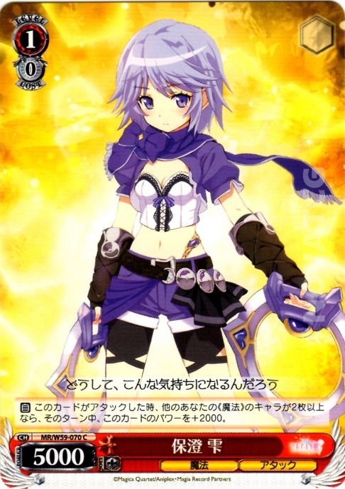【自】 このカードがアタックした時、他のあなたの《魔法》のキャラが2枚以上なら、そのターン中、このカードのパワーを+2000。