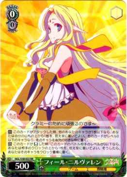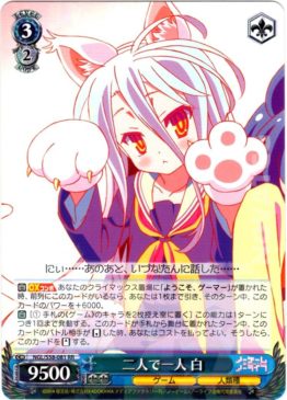 [A][(1) Clock the top card of your deck] When this card is placed on stage from hand, you may pay the cost. If you do, Choose a cost 0 or under card with「Sora」or「Shiro」in its name, place it to any slot on stage, then shuffle the deck.