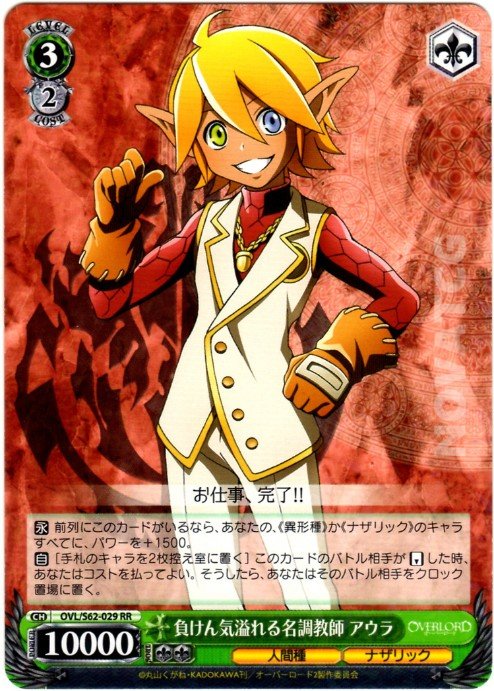 【永】前列にこのカードがいるなら、あなたの、《異形種》か《ナザリック》のキャラすべてに、パワーを+1500。