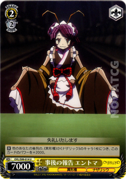 【永】 他のあなたの後列の、《異形種》か《ナザリック》のキャラ1枚につき、このカードのパワーを+2000。