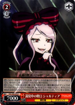 【自】 このカードが手札から舞台に置かれた時、そのターン中、このカードのパワーを+X。Xはあなたの、《異形種》か《ナザリック》のキャラの枚数×1000に等しい。