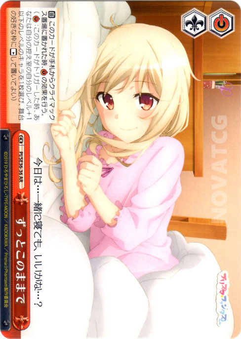 :このカードがトリガーした時、あなたは自分の控え室の自分のレベル+1以下のレベルのキャラを1枚選び、舞台の好きな枠に【レスト】して置いてよい)