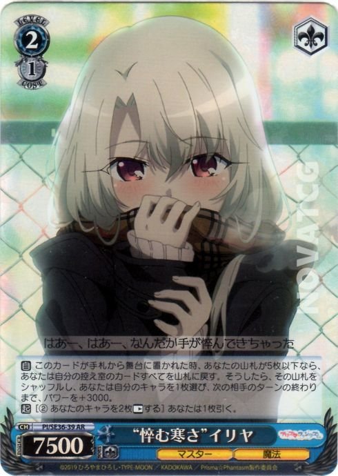 【自】 このカードが手札から舞台に置かれた時、あなたの山札が5枚以下なら、あなたは自分の控え室のカードすべてを山札に戻す。そうしたら、その山札をシャッフルし、あなたは自分のキャラを1枚選び、次の相手のターンの終わりまで、パワーを+3000。