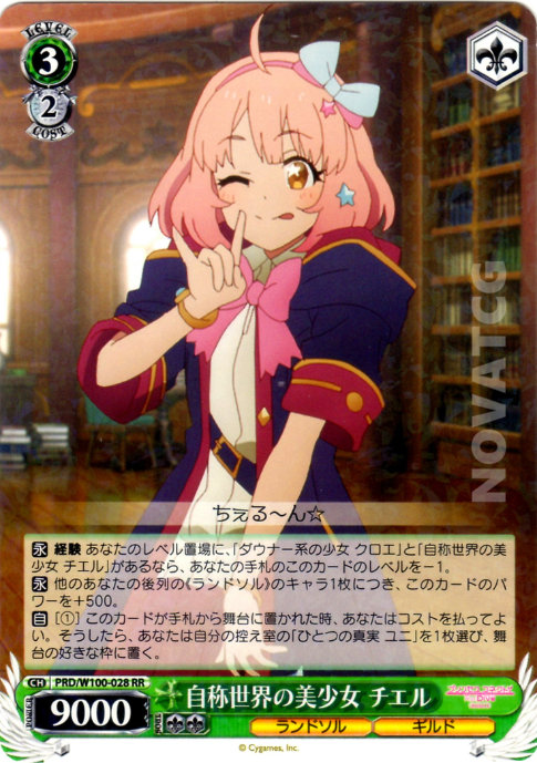 [C] – EXPERIENCE If you have [ダウナー系の少女 クロエ] and [自称世界の美少女 チエル] in your Level Zone, this card gets -1 Level in your Hand.