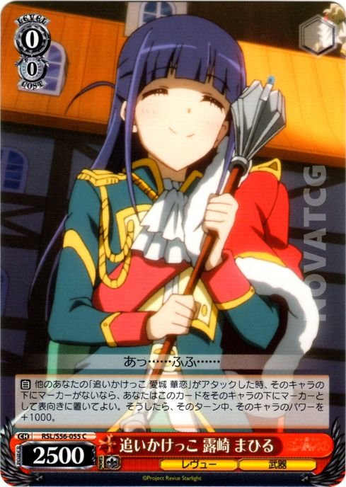 【自】 他のあなたの「追いかけっこ 愛城 華恋」がアタックした時、そのキャラの下にマーカーがないなら、あなたはこのカードをそのキャラの下にマーカーとして表向きに置いてよい。そうしたら、そのターン中、そのキャラのパワーを+1000。