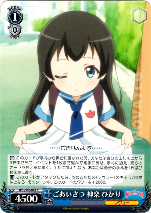 【自】 このカードがアタックした時、他のあなたの《レヴュー》のキャラが2枚以上なら、そのターン中、このカードのパワーを+2000。
