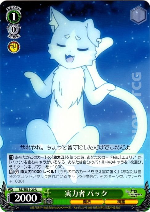 【自】 あなたがこのカードの『助太刀』を使った時、あなたのカード名に「エミリア」か「パック」を含むキャラがいるなら、あなたは自分のバトル中のキャラを1枚選び、そのターン中、パワーを+1000。