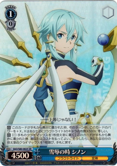 【自】 このカードが手札から舞台に置かれた時、そのターン中、このカードのパワーを+X。Xはあなたの《フラクトライト》のキャラの枚数×500に等しい。