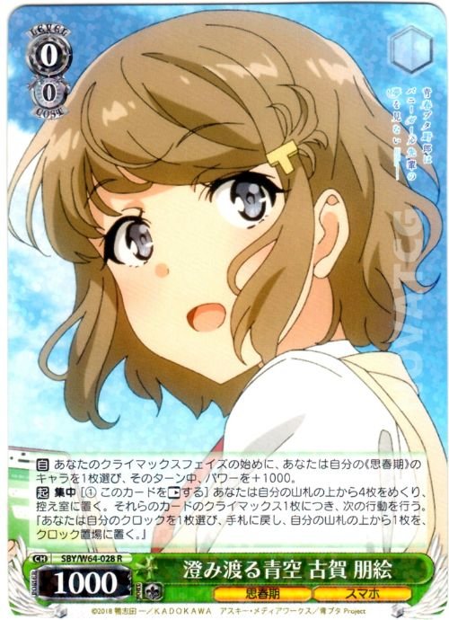【自】 あなたのクライマックスフェイズの始めに、あなたは自分の《思春期》のキャラを1枚選び、そのターン中、パワーを+1000。