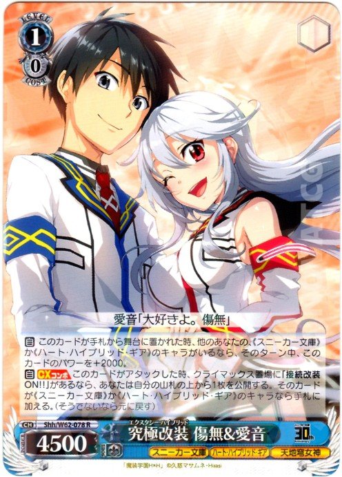 【自】【CXコンボ】 このカードがアタックした時、クライマックス置場に「接続改装 ON!!」があるなら、あなたは自分の山札の上から1枚を公開する。そのカードが《スニーカー文庫》か《ハート・ハイブリッド・ギア》のキャラなら手札に加える。(そうでないなら元に戻す)