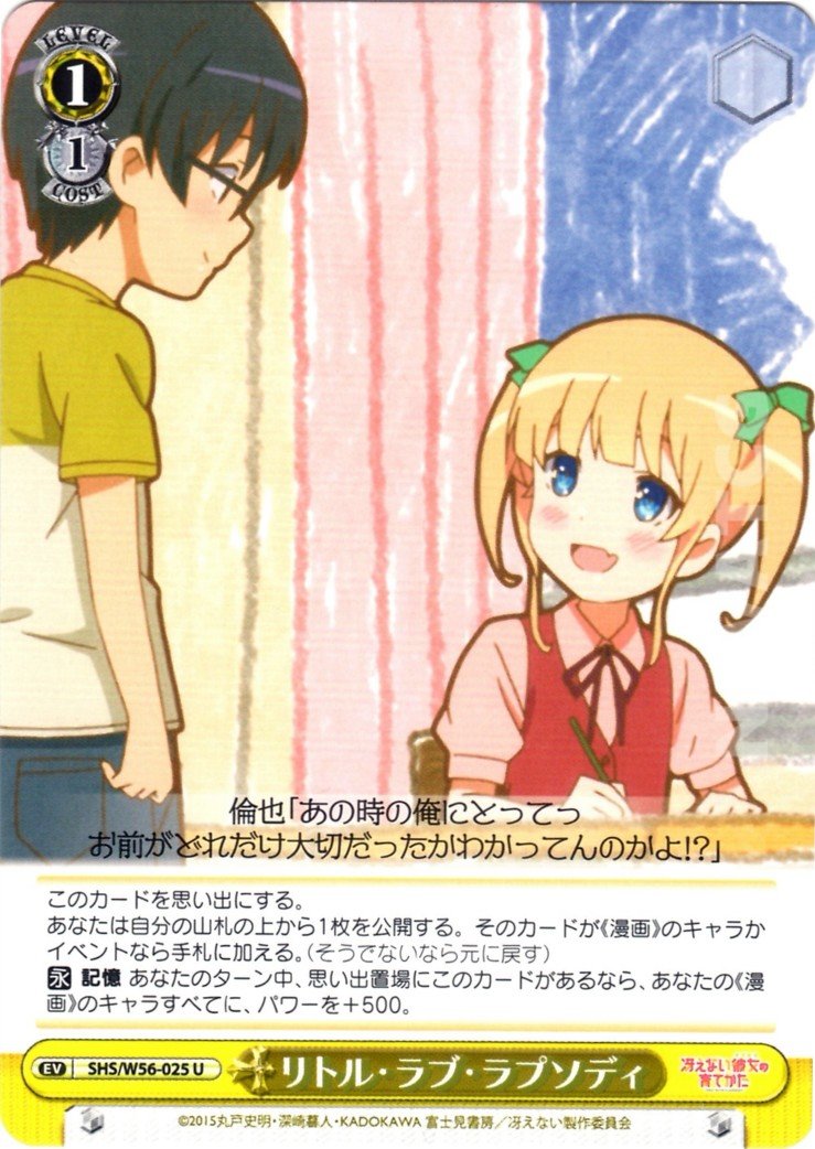 【永】 記憶 あなたのターン中、思い出置場にこのカードがあるなら、あなたの《漫画》のキャラすべてに、パワーを+500。