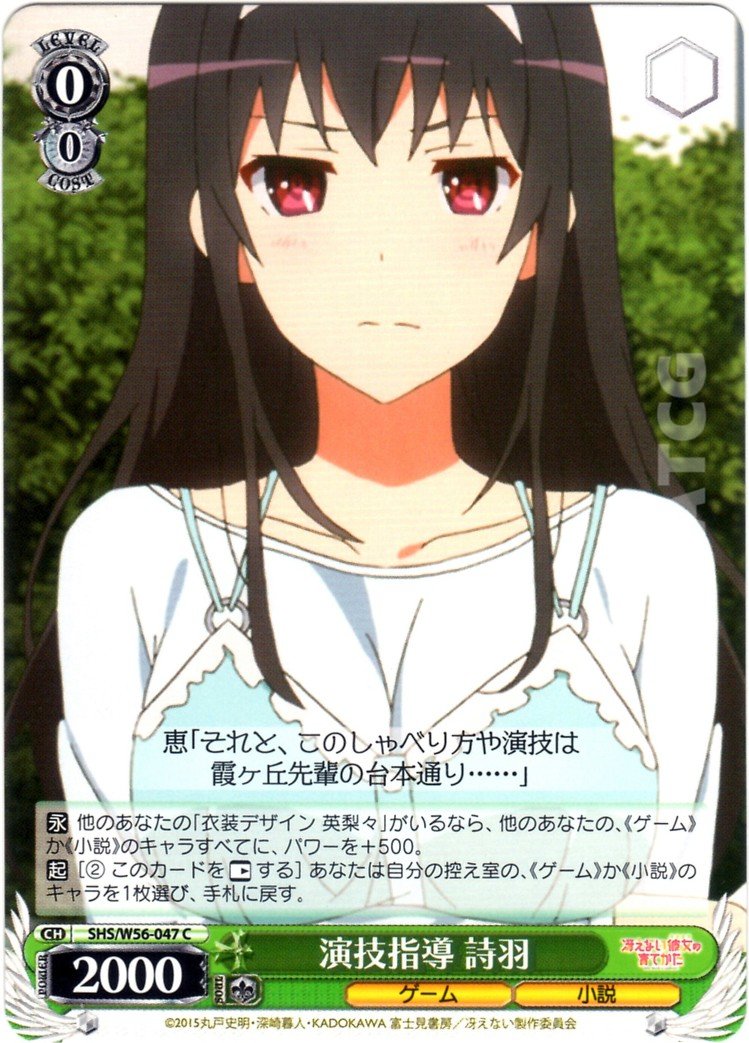 【永】 他のあなたの「衣装デザイン 英梨々」がいるなら、他のあなたの、《ゲーム》か《小説》のキャラすべてに、パワーを+500。