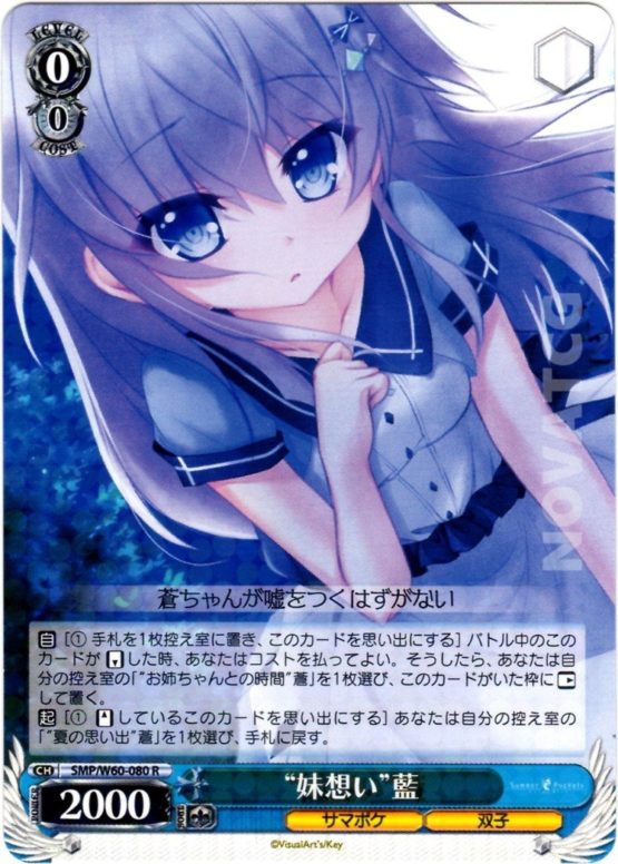 【起】[(1) 【スタンド】しているこのカードを思い出にする] あなたは自分の控え室の「“夏の思い出”蒼」を1枚選び、手札に戻す。