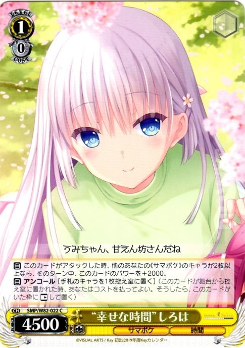 【自】 このカードがアタックした時、他のあなたの《サマポケ》のキャラが2枚以上なら、そのターン中、このカードのパワーを+2000。