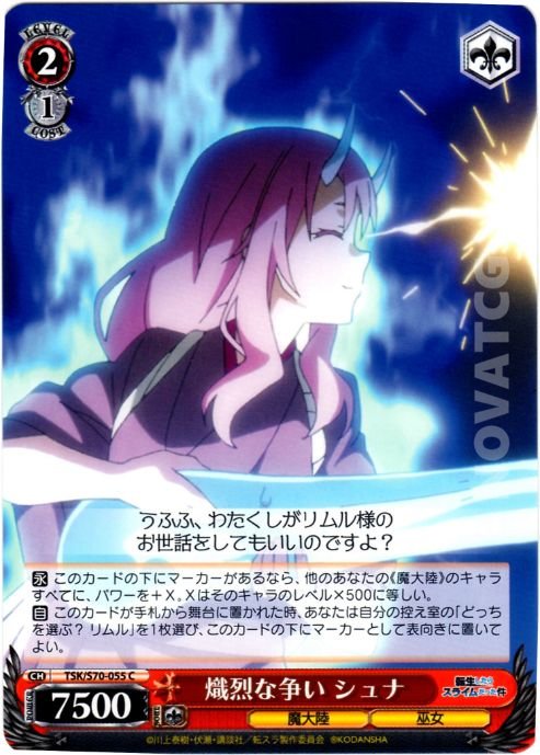 【自】 このカードが手札から舞台に置かれた時、あなたは自分の控え室の「どっちを選ぶ? リムル」を1枚選び、このカードの下にマーカーとして表向きに置いてよい。