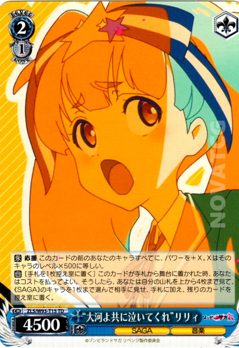 【永】 応援 このカードの前のあなたのキャラすべてに、パワーを+X。Xはそのキャラのレベル×500に等しい。